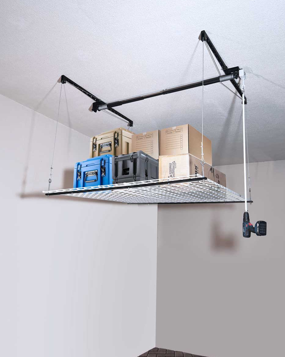 You’ll get the Overhead Storage Rack Lift Kit System along with the Three Grills powder coated to store your items.