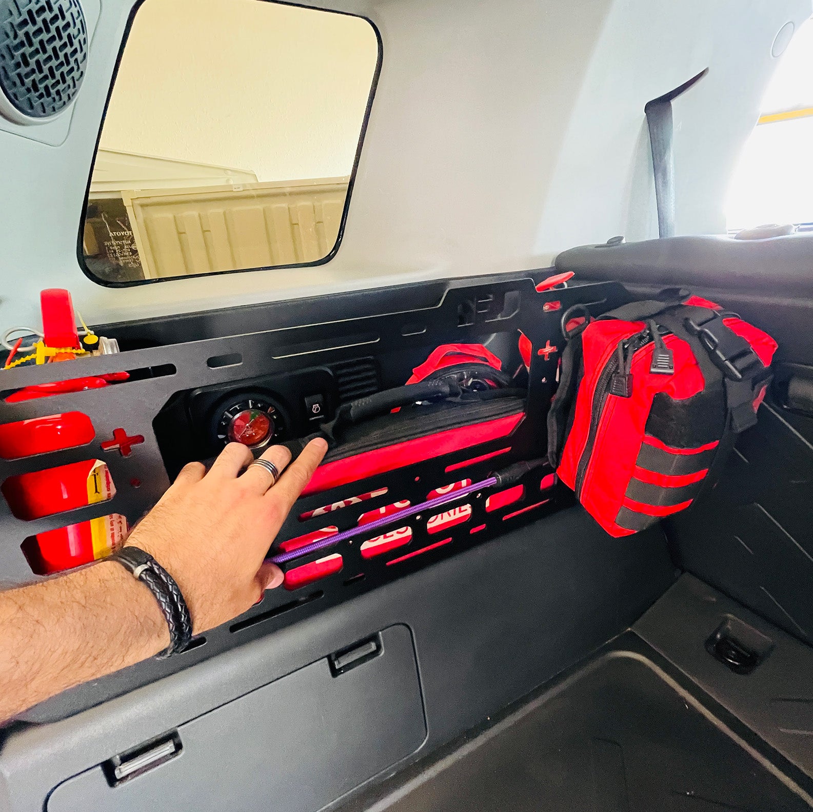 Versatile Compatibility: Designed to fit snugly in vehicles, this compact organizer offers additional space for tactical gear, Molle bags, tools, emergency equipment, and small essentials.